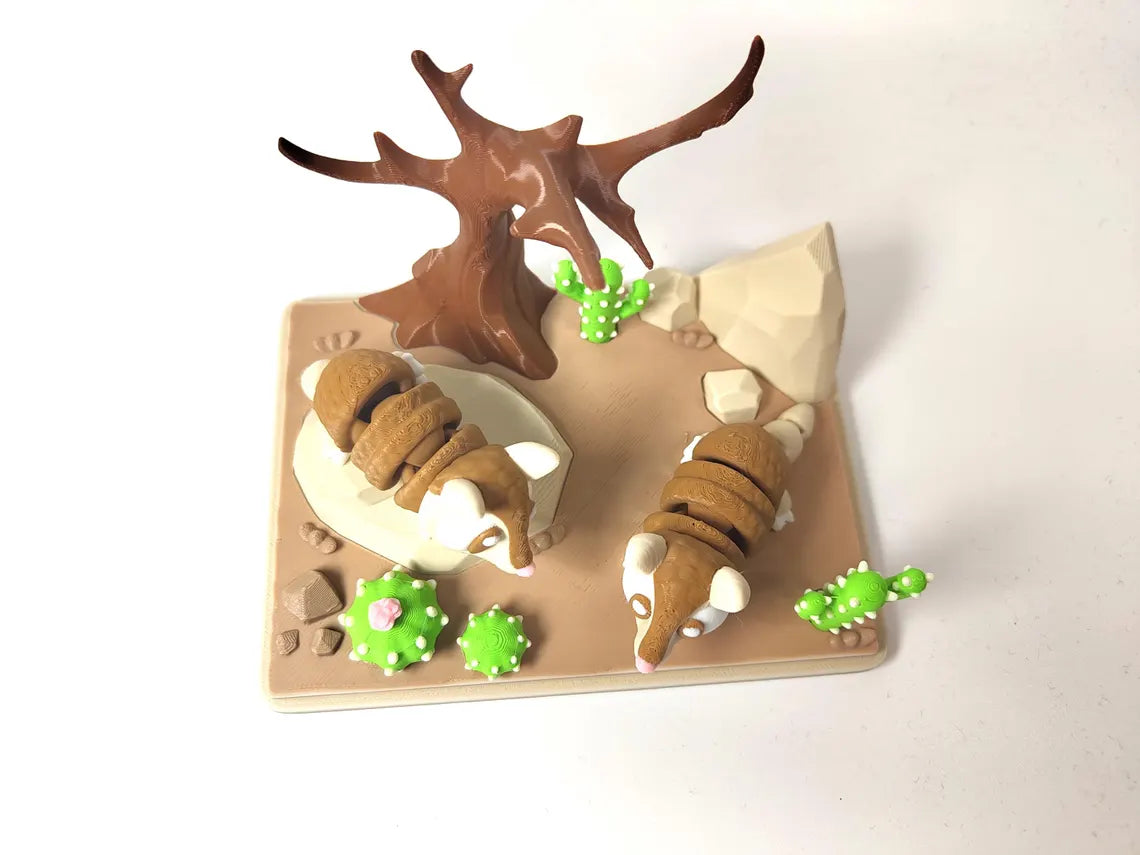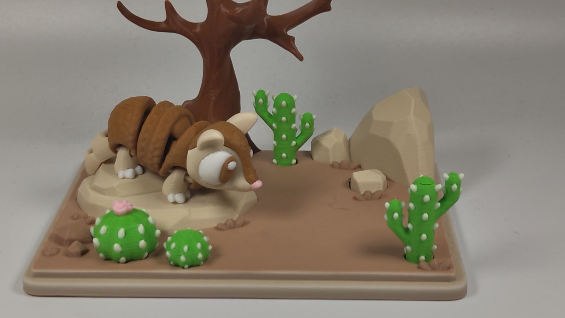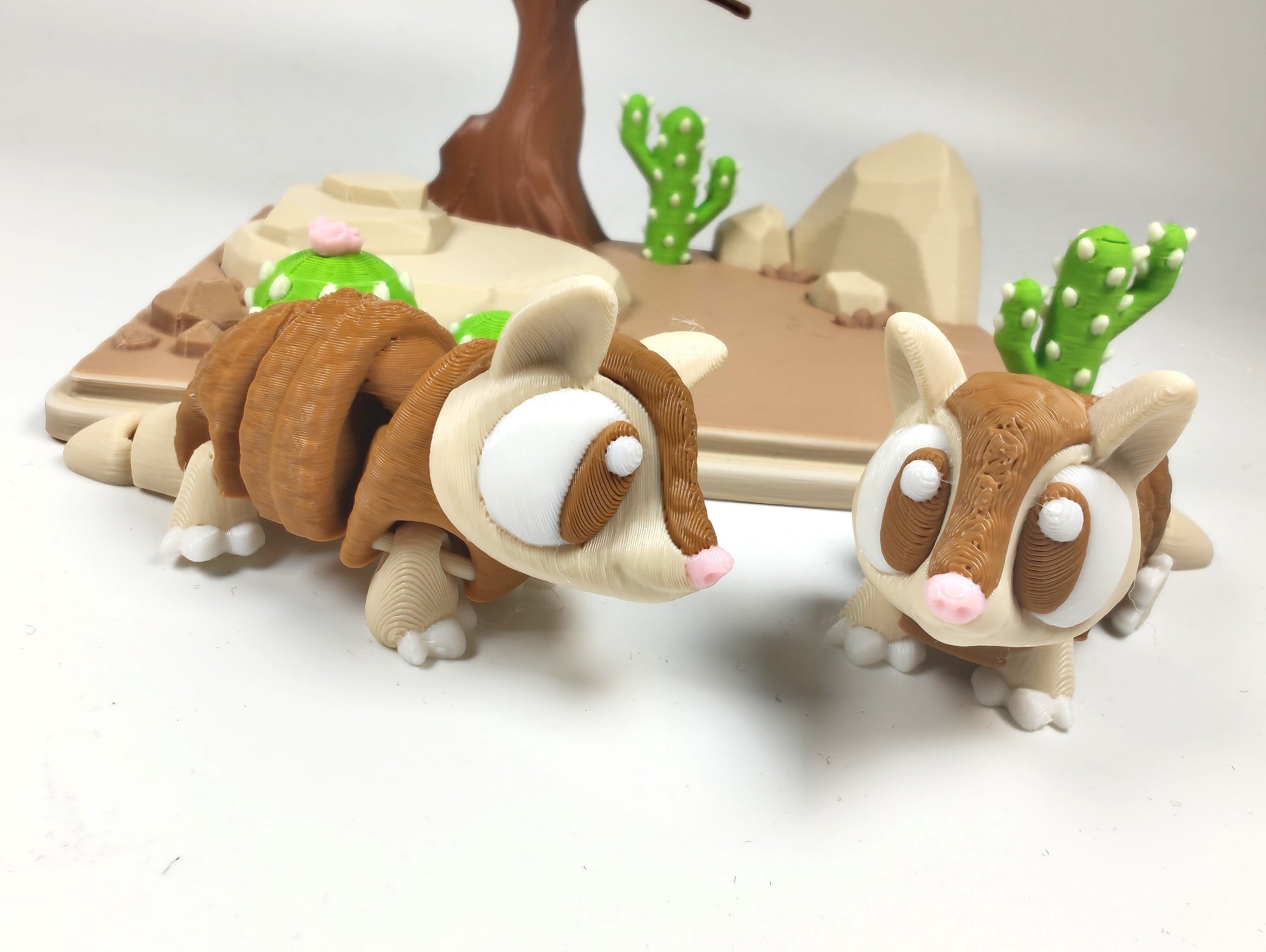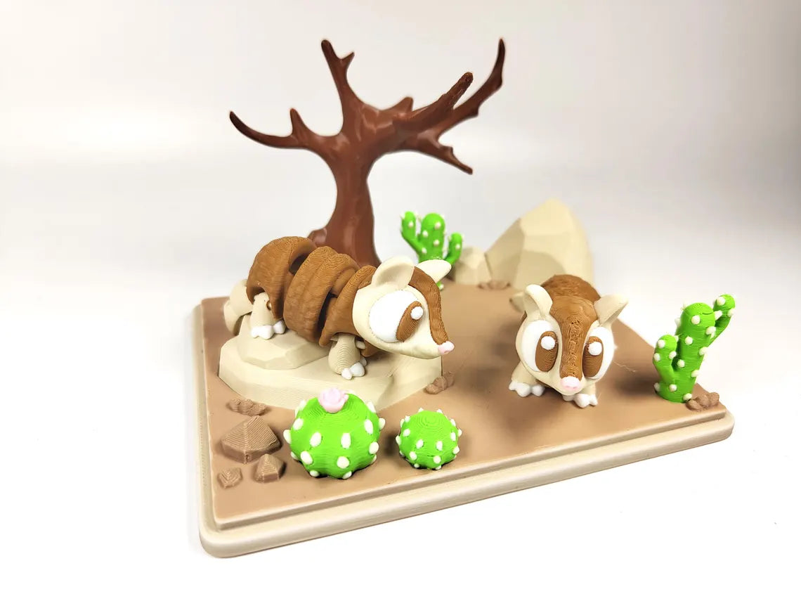 🦔 Armadillo Desert – 3D Printed Diorama with Articulated Armadillo Companions