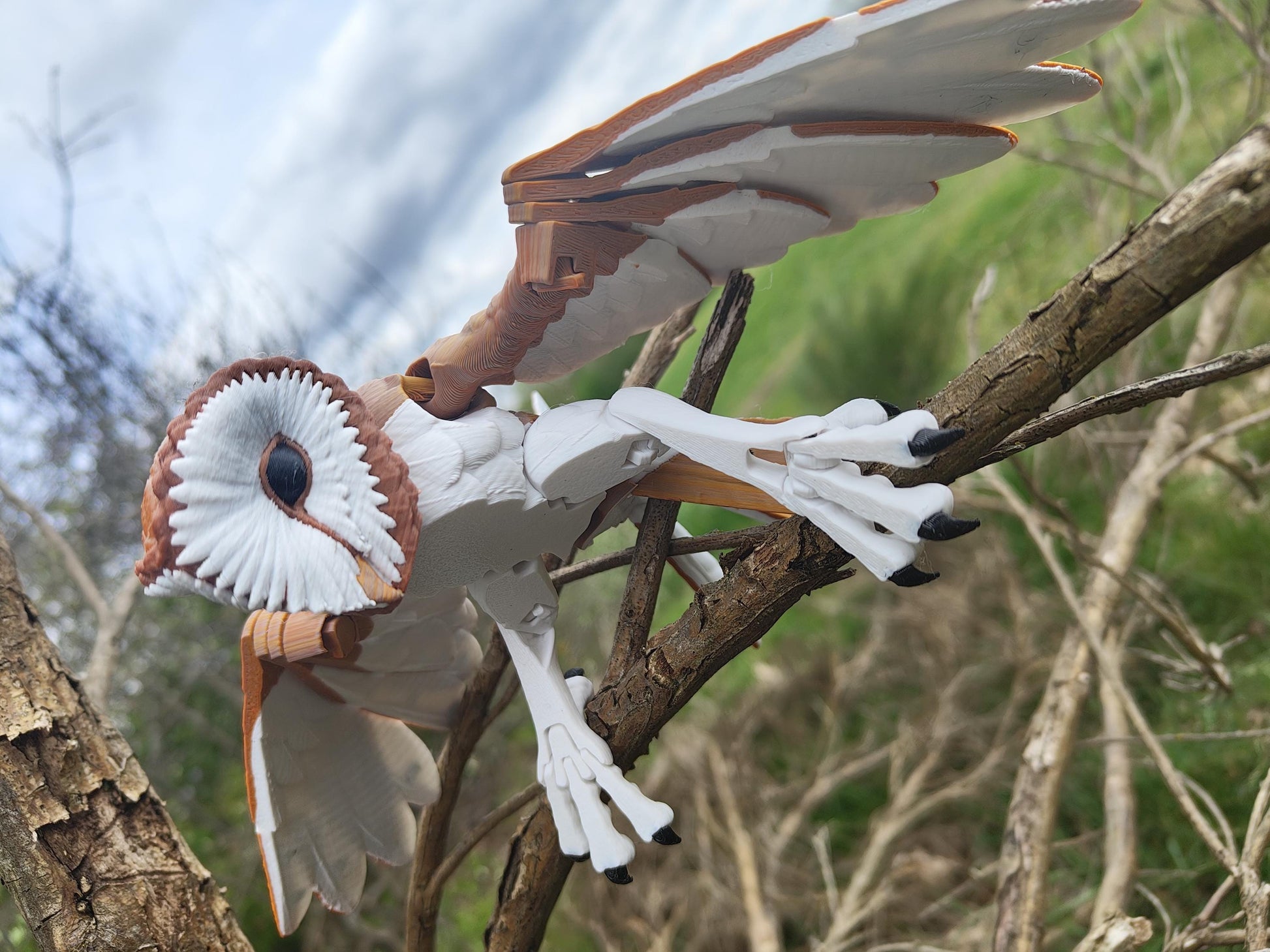 š ļø 3D-Printed with Care ā Lightweight, durable, and beautifully detailed. Whether perched in quiet watchfulness or soaring in silent flight, this poseable barn owl is a stunning addition to any avian or fantasy collection!