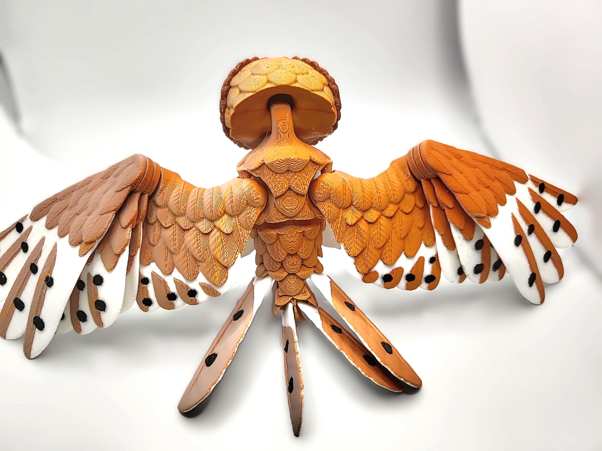 Bring the mystical beauty of the barn owl to life with this highly detailed 3D-printed articulated model! Designed for ultimate poseability, this elegant owl features moving wings, individual wing feathers, tail feathers, head, and talons, making it perfect for display, fidgeting, or photography.