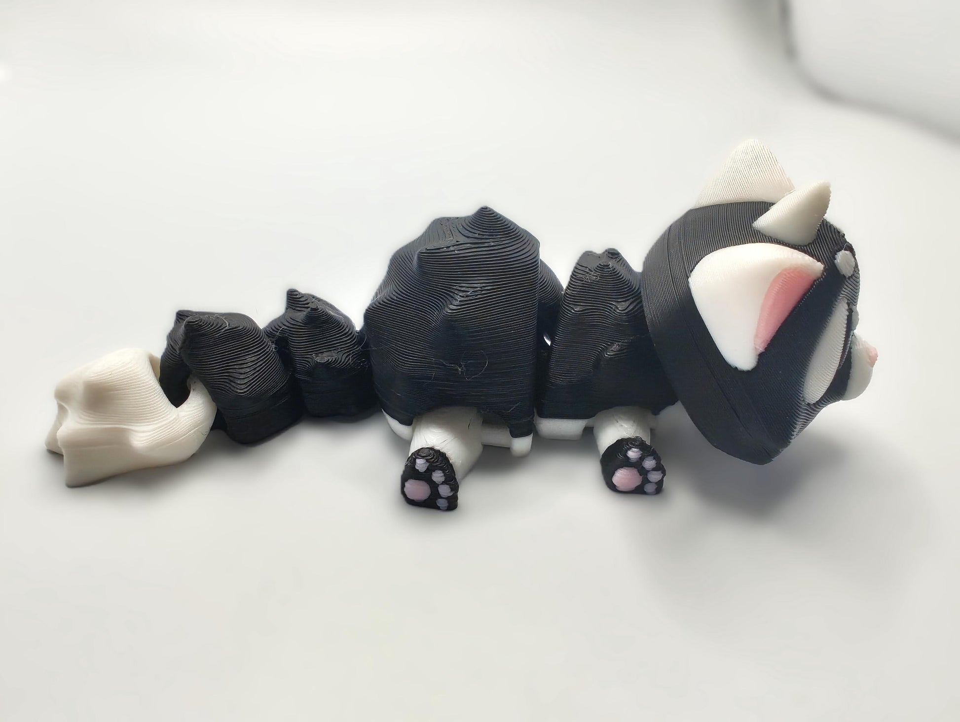 Meet your new wriggly pocket cat, a fun and flexible 3D-printed articulated model that’s perfect for keeping your hands busy! This adorable cat is fully articulated, allowing it to twist, bend, and wiggle in a super satisfying way.