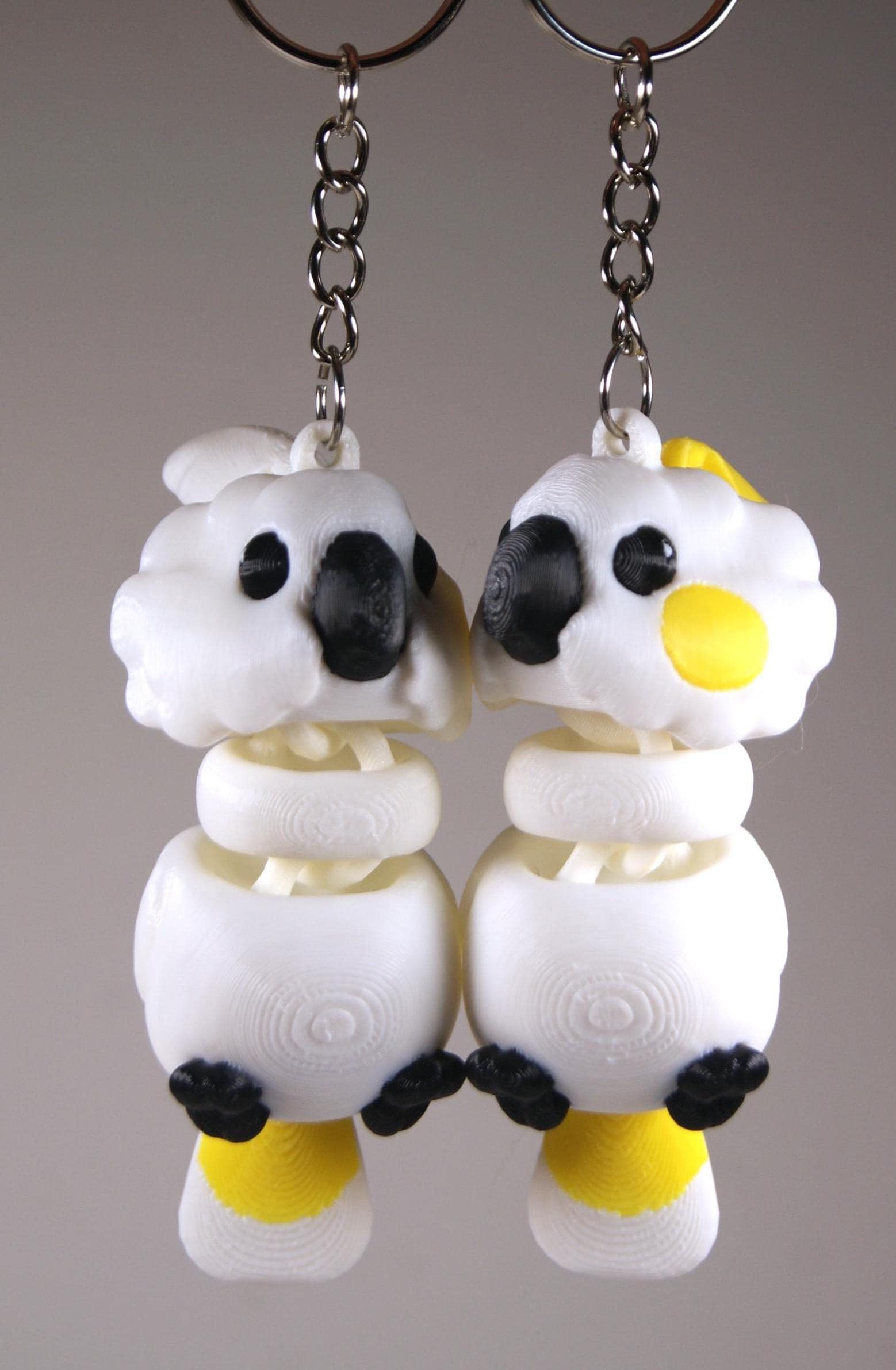 Articulated Cockatoo Keychain 3D Printed Parrot Key Ring - 3D Printed Cockatoo Keyring - Bird Fob - Bird Fidget - Choose from 2 variants