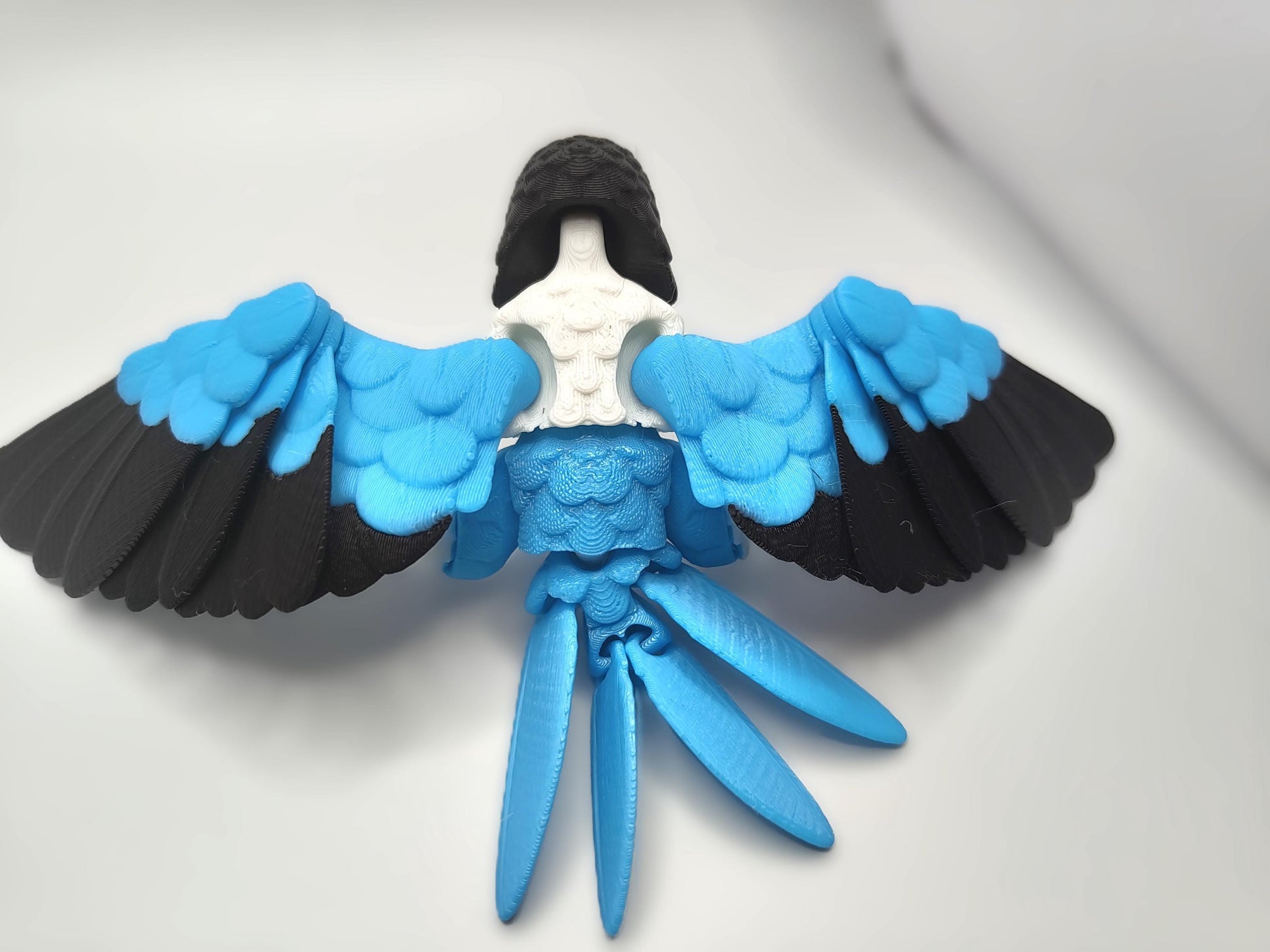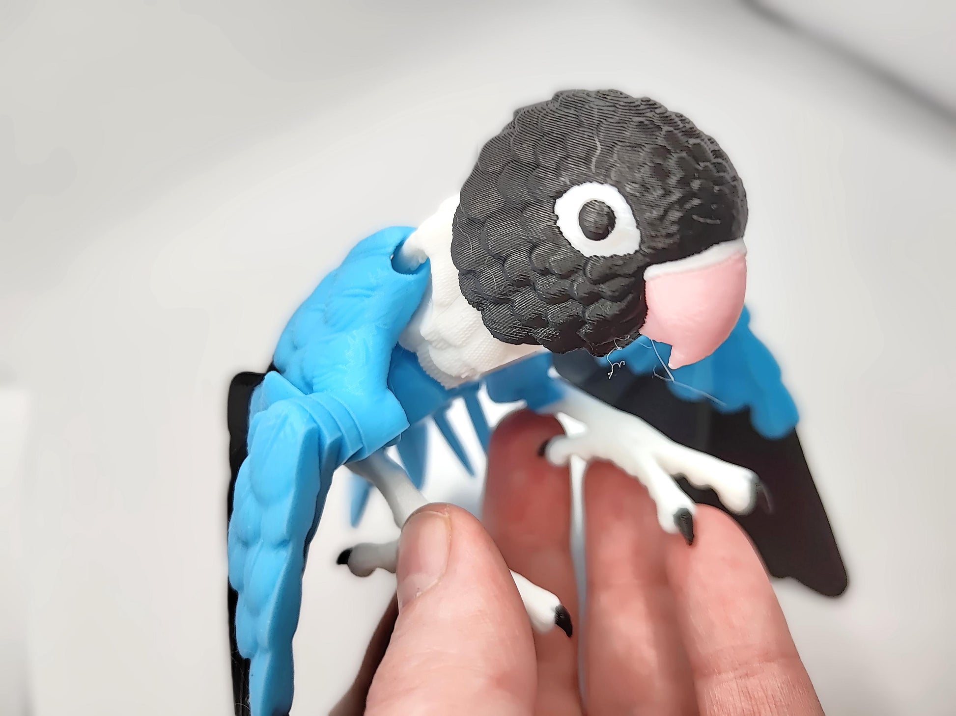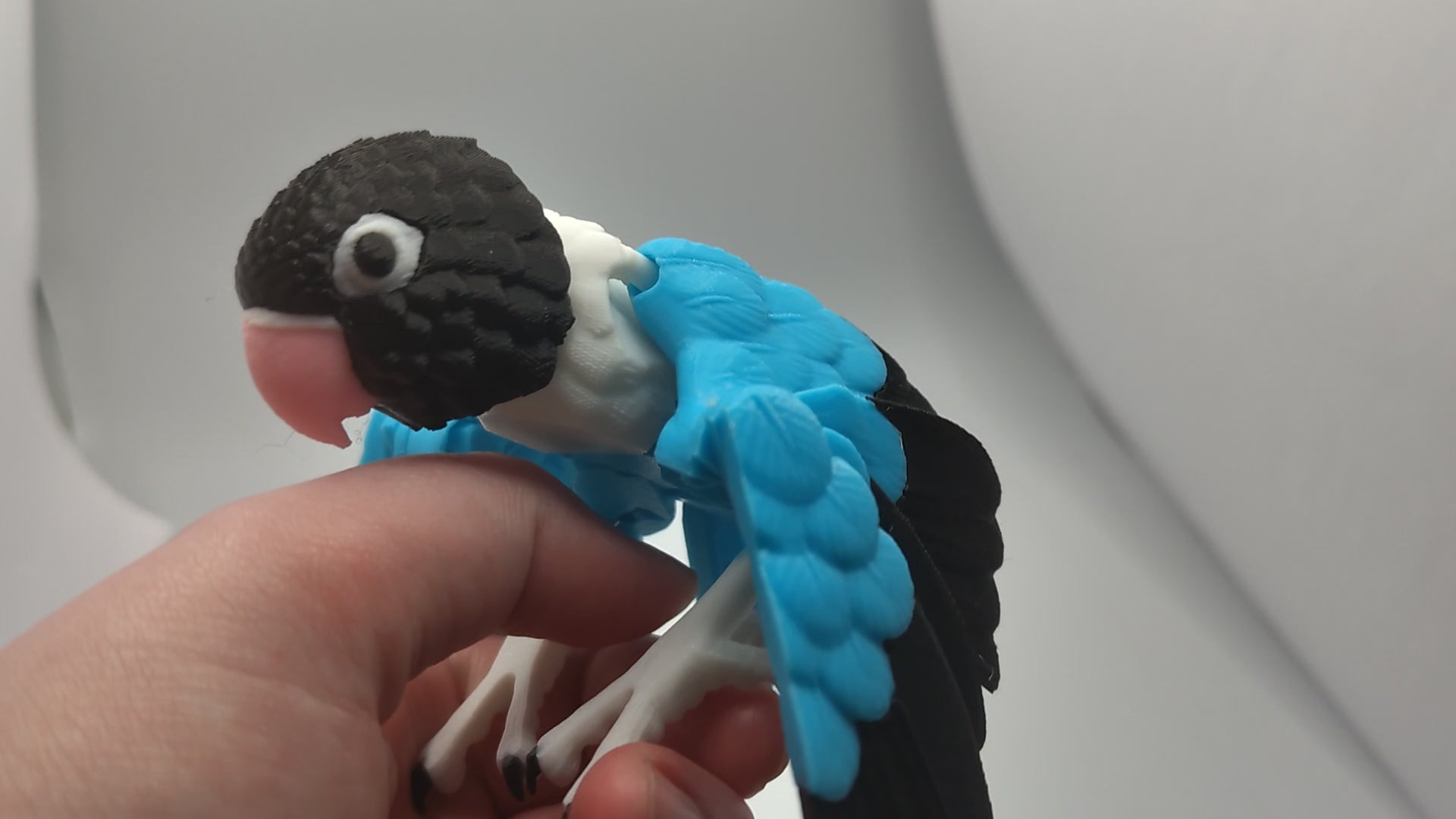 Bring the joy and charm of the lovebird to life with this highly detailed 3D-printed articulated model! Designed for ultimate poseability, this adorable parrot features moving wings, individual wing feathers, tail feathers, and head, making it perfect for display, fidgeting, or photography.
