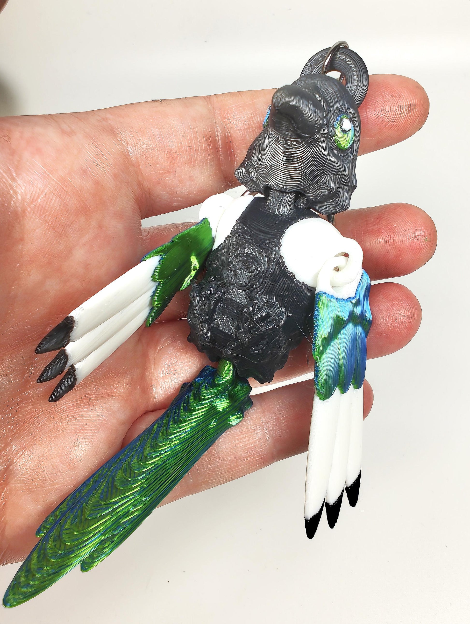 Articulated Magpie Keychain: 3D Printed Bird Fidget Keyring