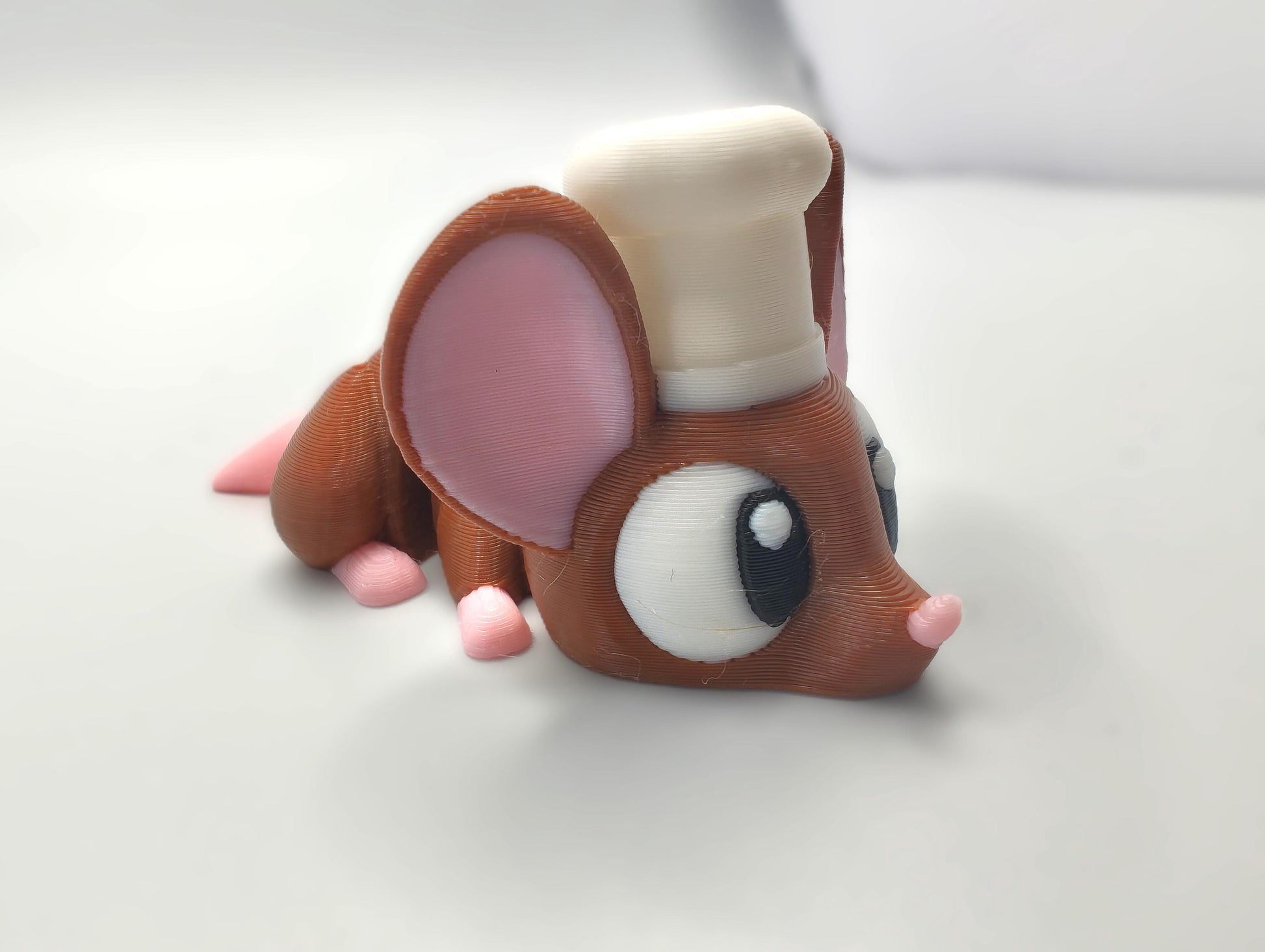 Articulated Mouse Fidget Model – Flexible 3D Printed Mouse Chef Mouse Rat - Pocket Animal – Sensory Desk Pet