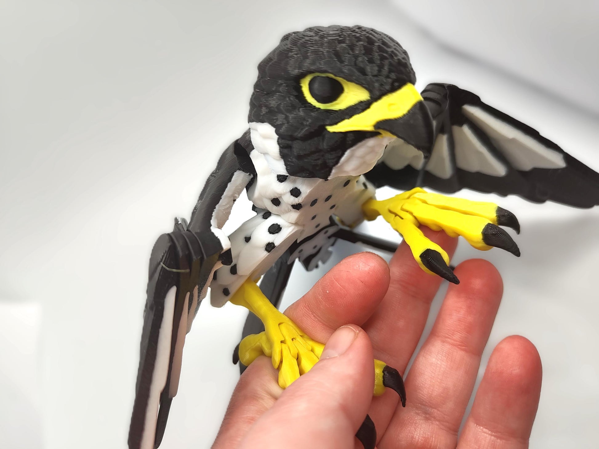 Capture the grace and power of the world’s fastest bird with this highly detailed 3D-printed articulated peregrine falcon! Designed for ultimate poseability, this majestic raptor features moving wings, individual wing feathers, tail feathers, head, and talons, making it perfect for display, fidgeting, or photography.