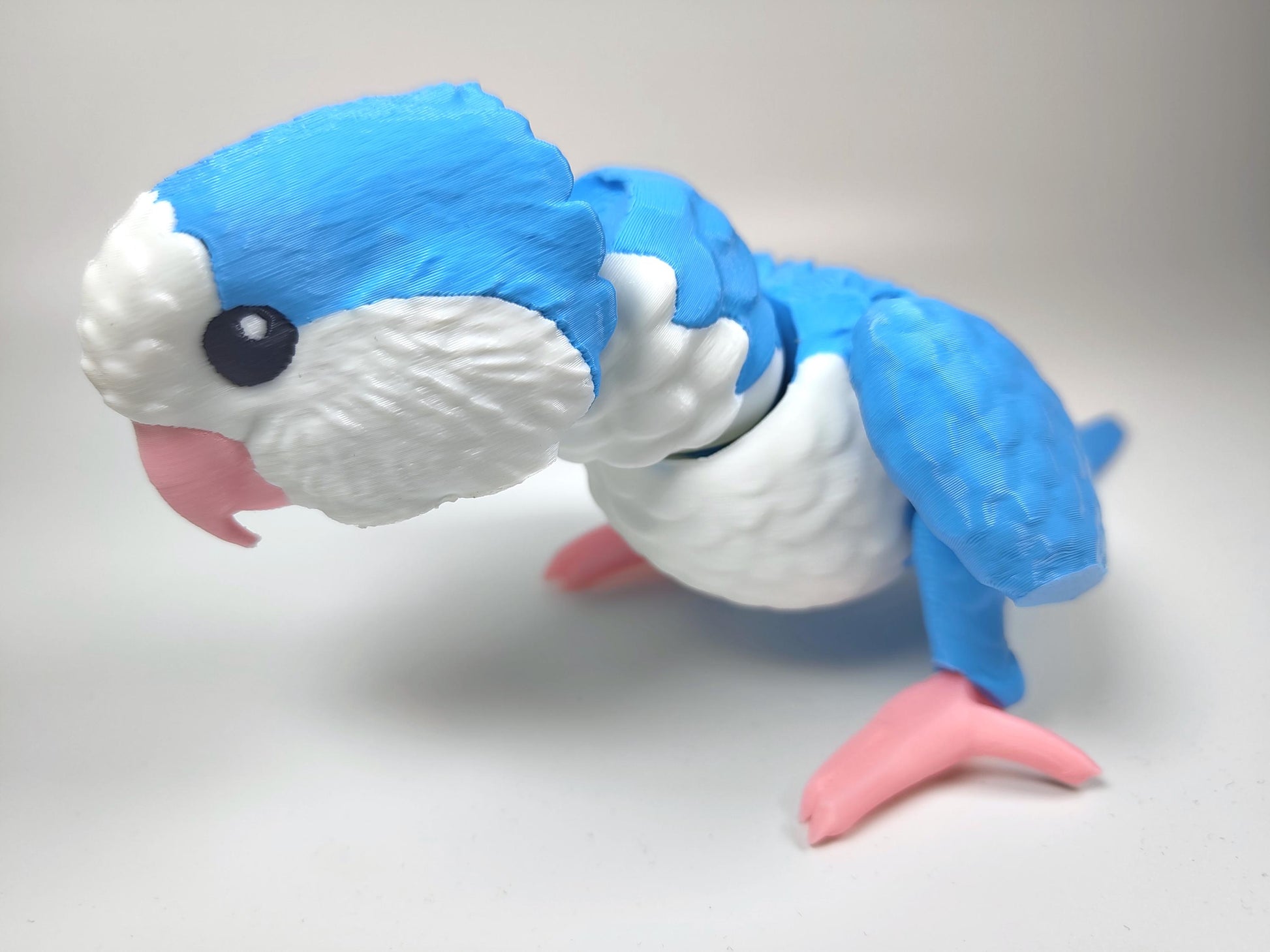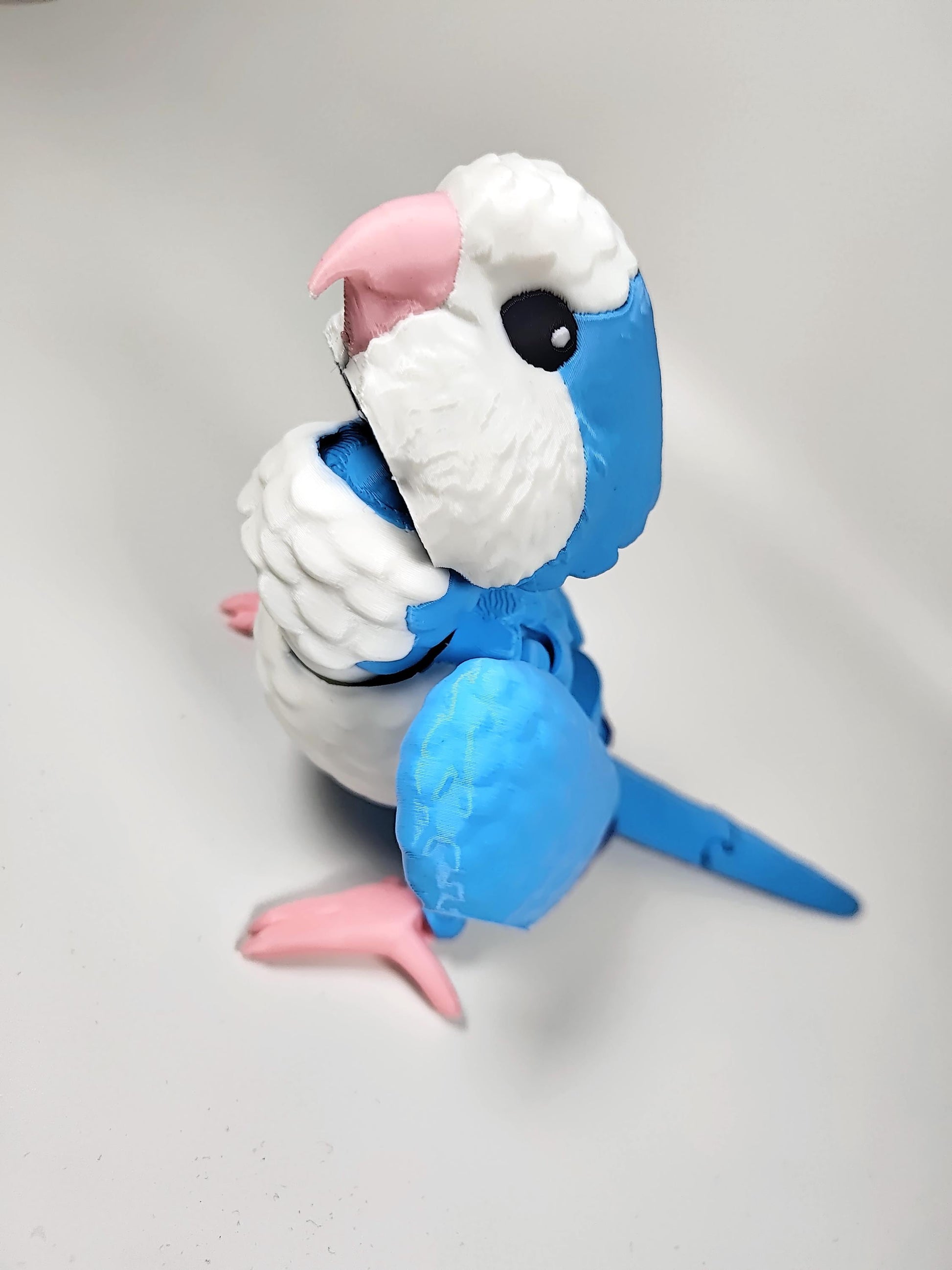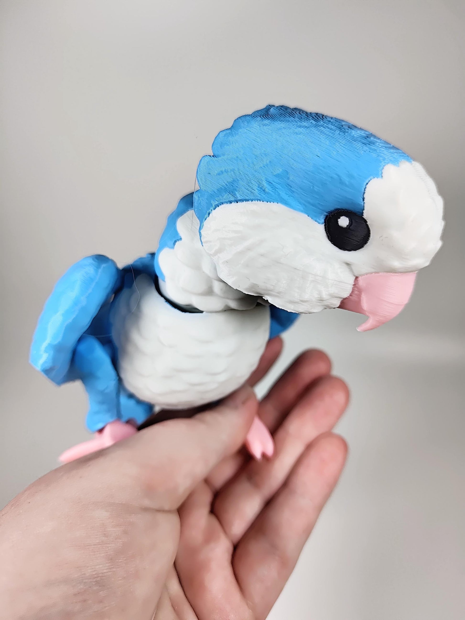 Capture the curious charm of the Quaker parrot with this fully articulated 3D-printed model in soft light blue and white shades. Known for their intelligence and playful personalities, Quakers make delightful companionsāand now you can enjoy one in poseable, collectable form!