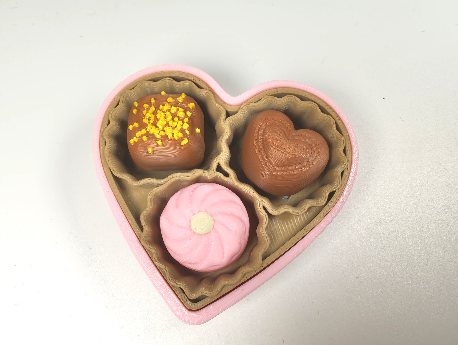 1x Heart-shaped chocolate box with 3 integrated chocolate clickers