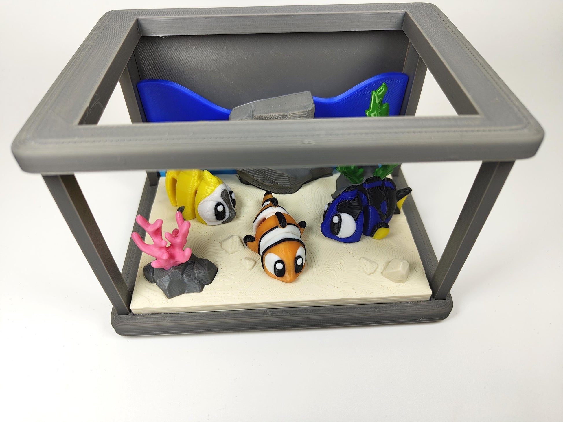 Fish Tank Friends 3D Printed Diorama - Articulated Fish Fidget Collectable - Clown Fish Angel Fish Surgeon Fish - Fish Tank and Fish Set