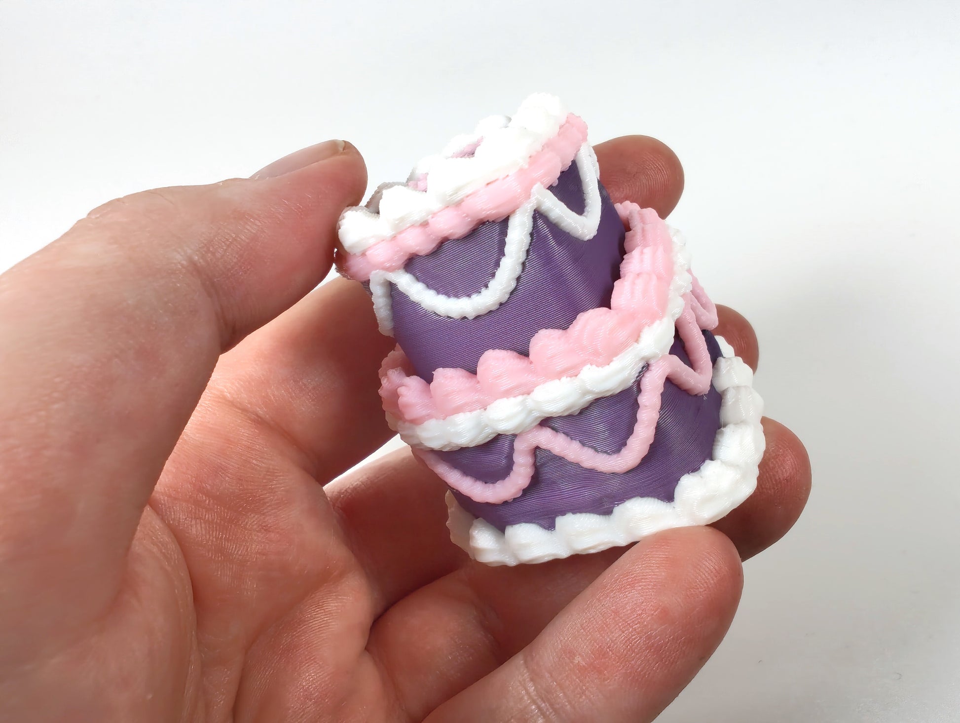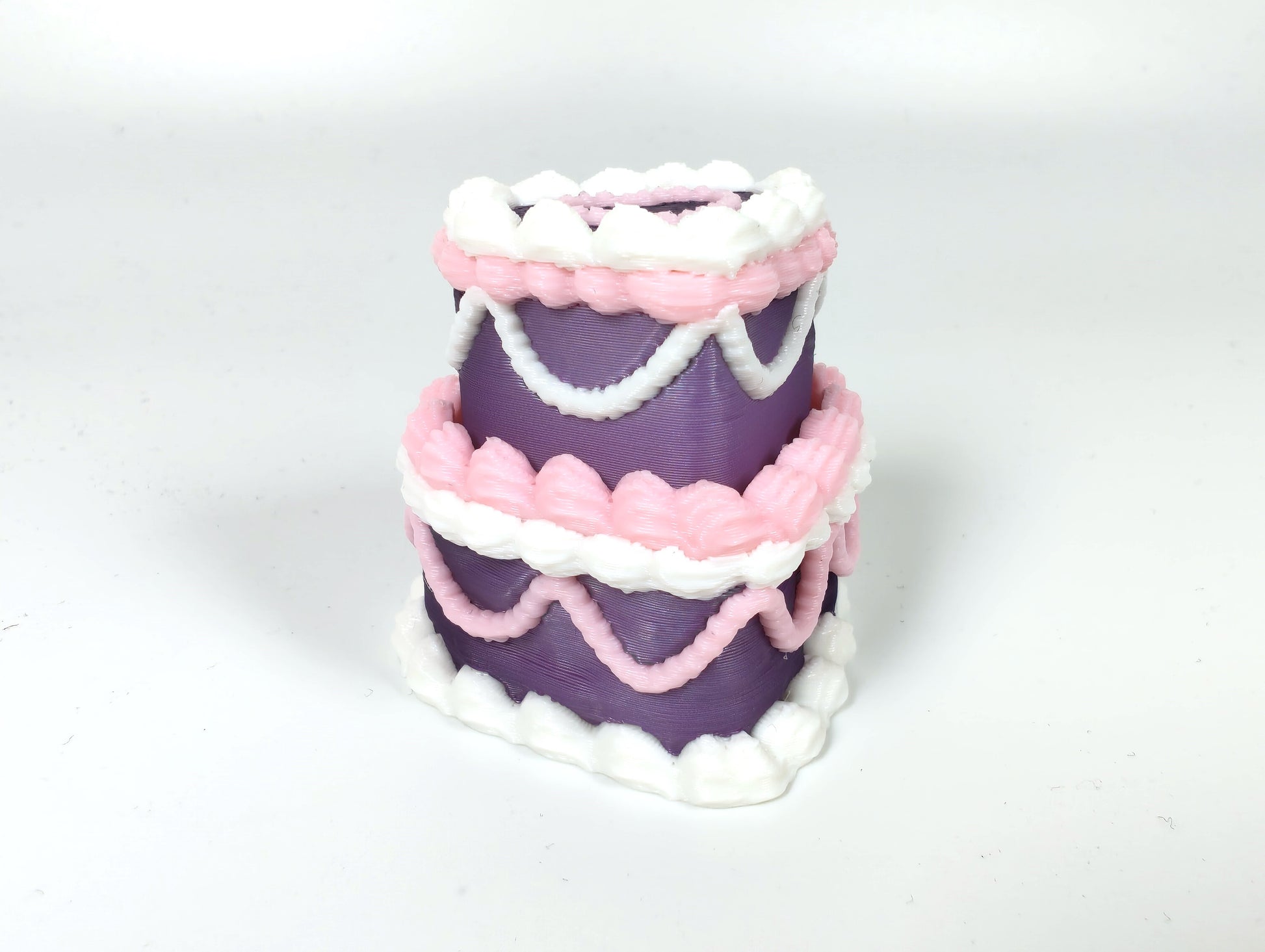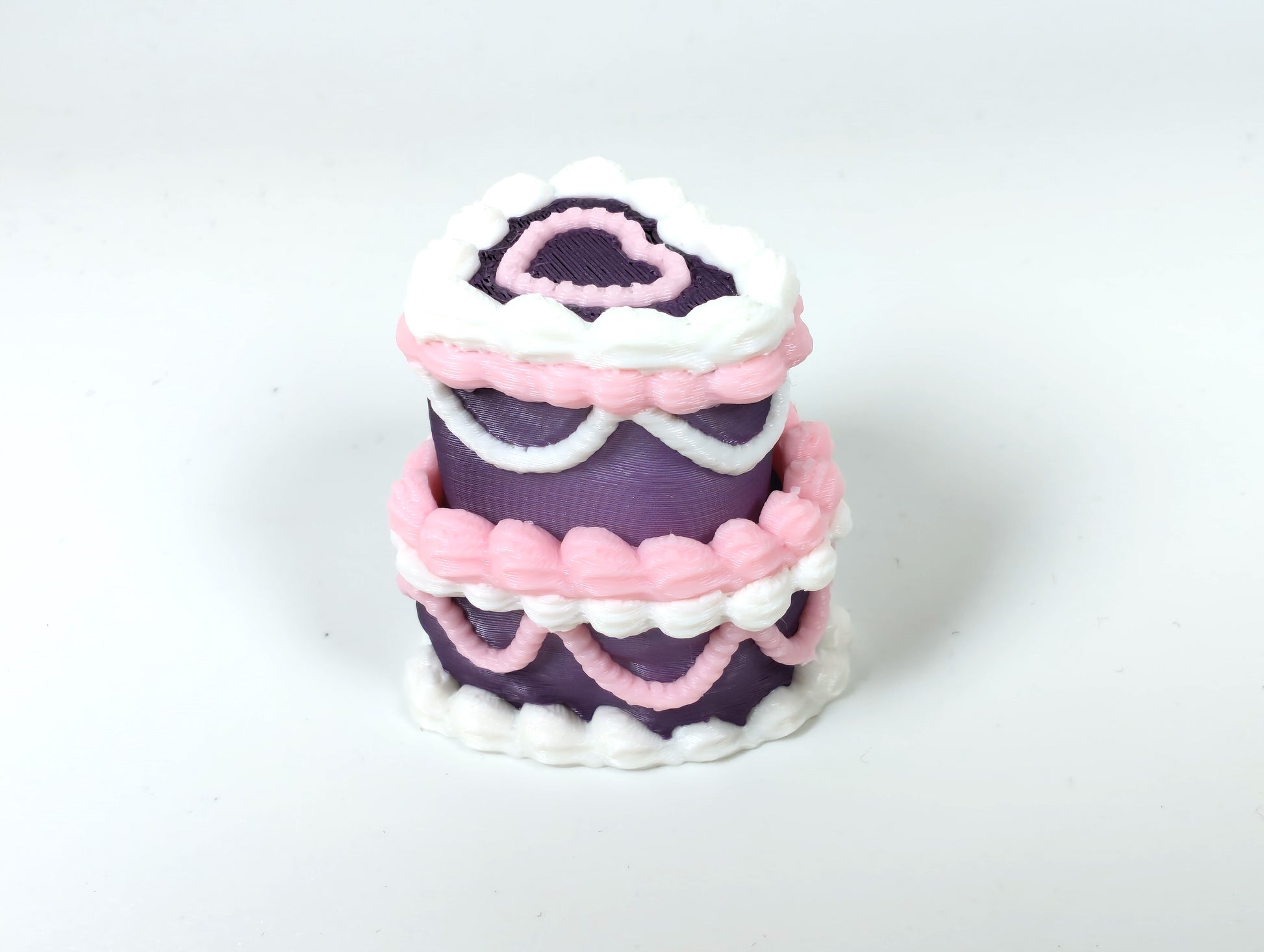 From the whimsical world of The Clicky Café comes Frosted Violet – a charming 3D-printed dessert fidget in the shape of a two-tiered heart cake, finished with piped pink and white icing. The top tier pops and clicks satisfyingly, making it as fun to play with as it is cute to look at!