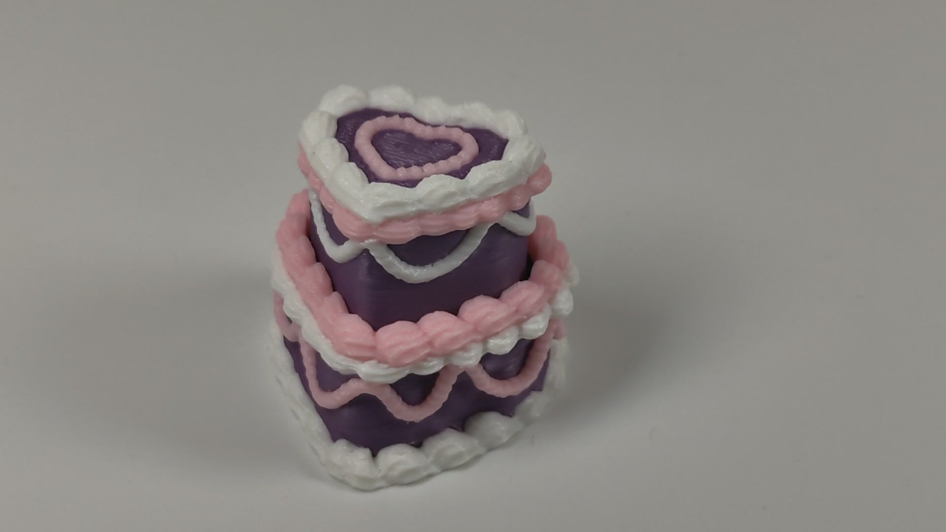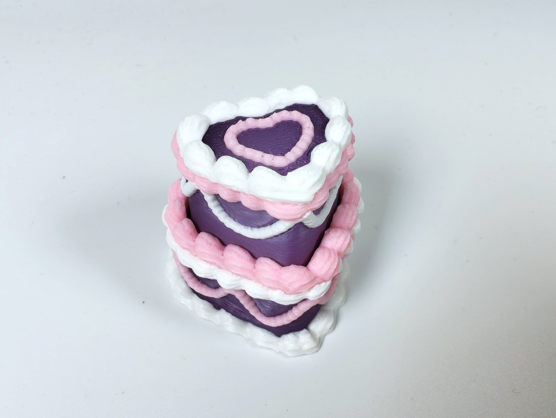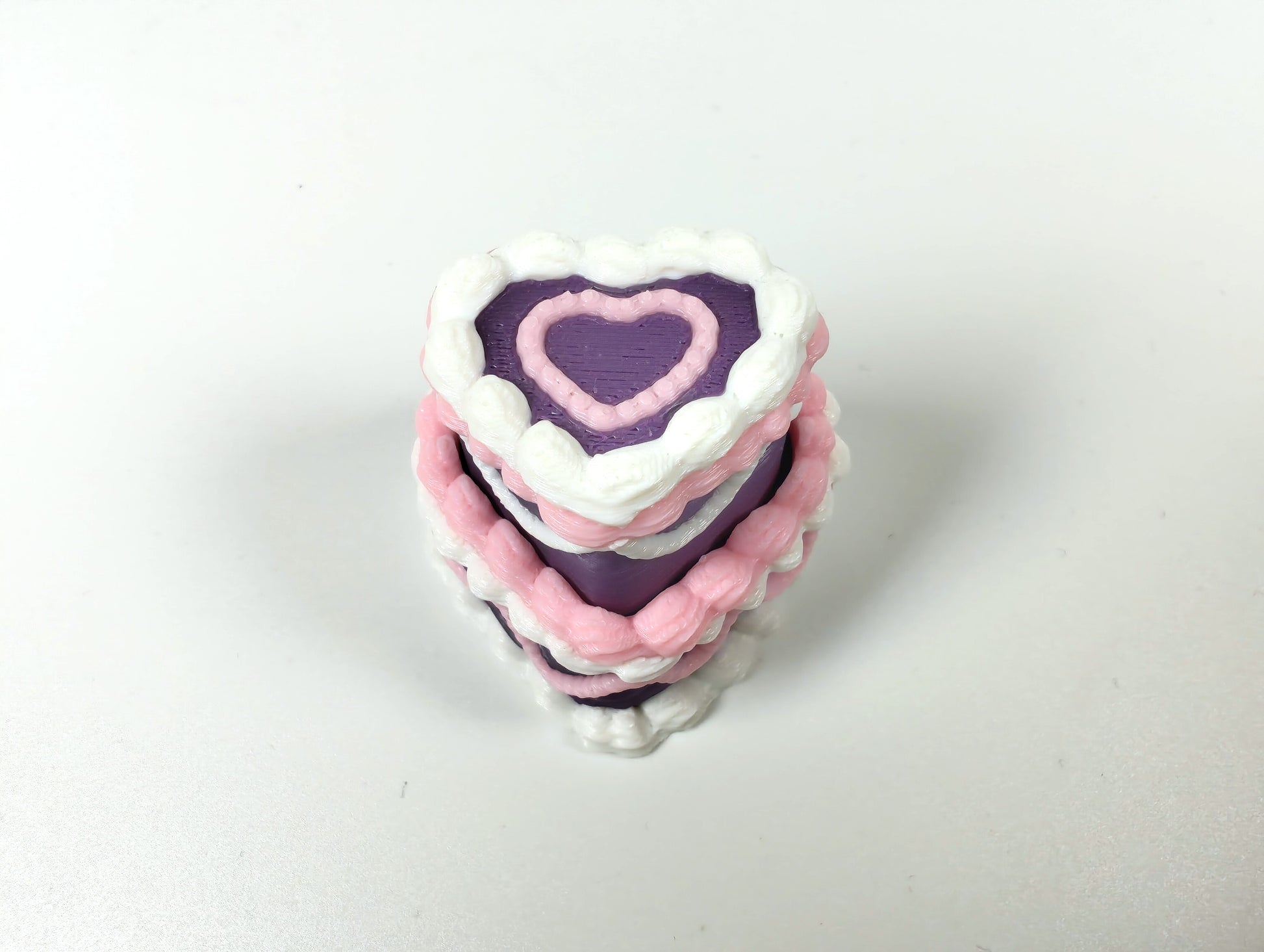 Frosted Violet Cake Clicker – 3D Printed Heart-Shaped Cake Fidget Toy