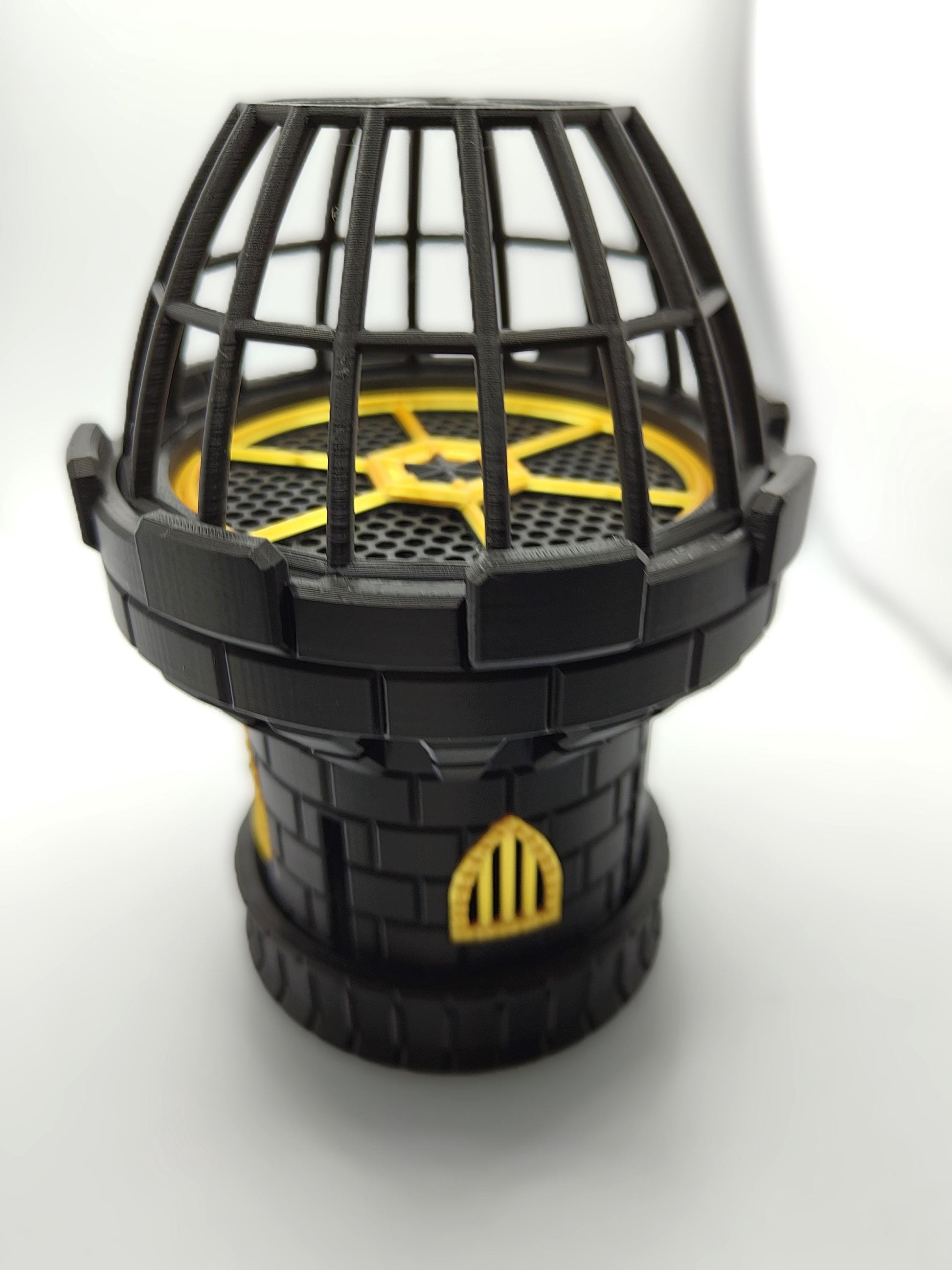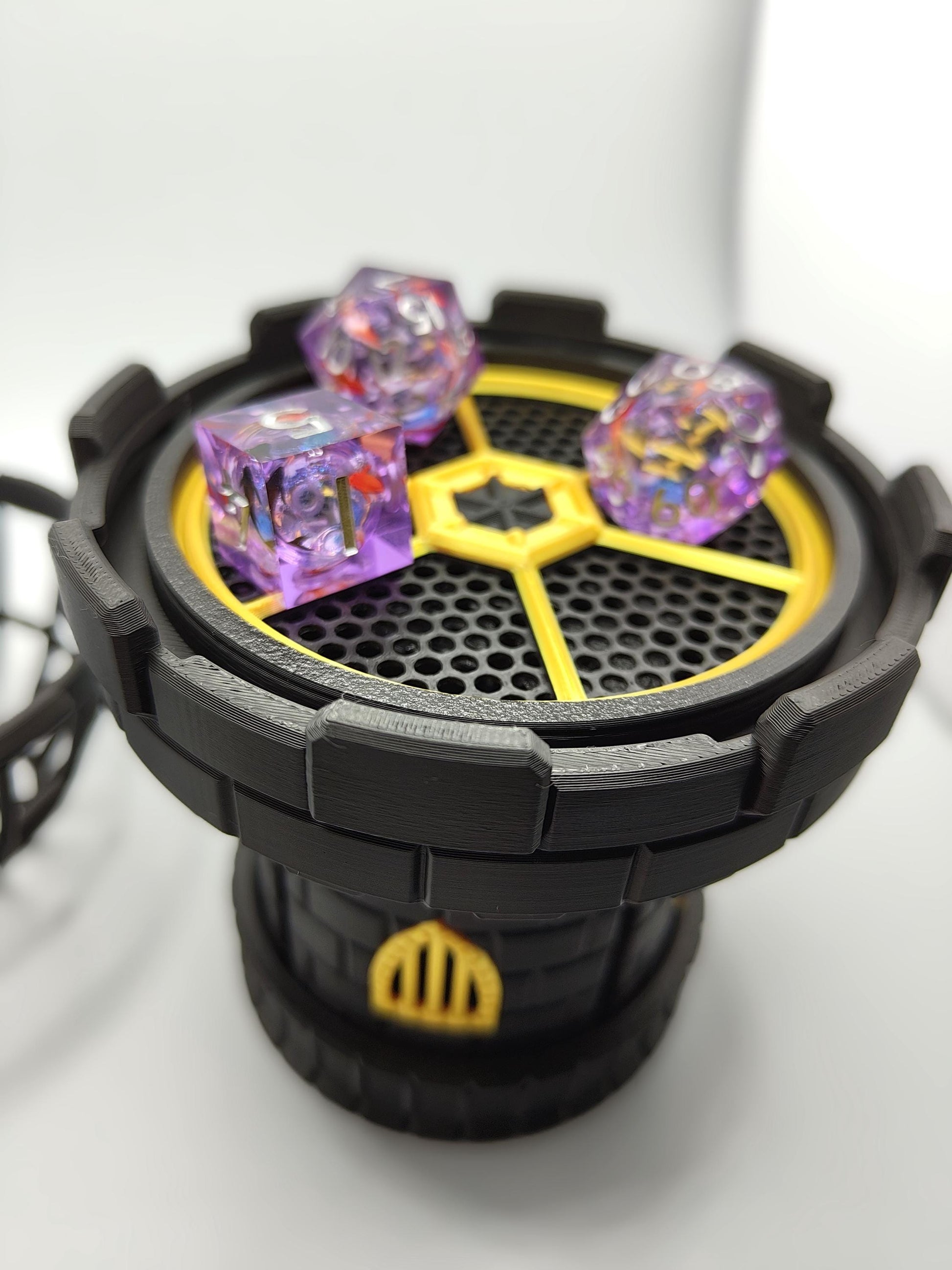 🎲 Step into the realm of adventure with this mechanical castle dice spinner, designed for fun, fair rolls with a unique twist! This 3D-printed tower features a spinning platform that tumbles your dice, all controlled by a movable piece—simply lift the piece up and down the tower to set the dice spinning!