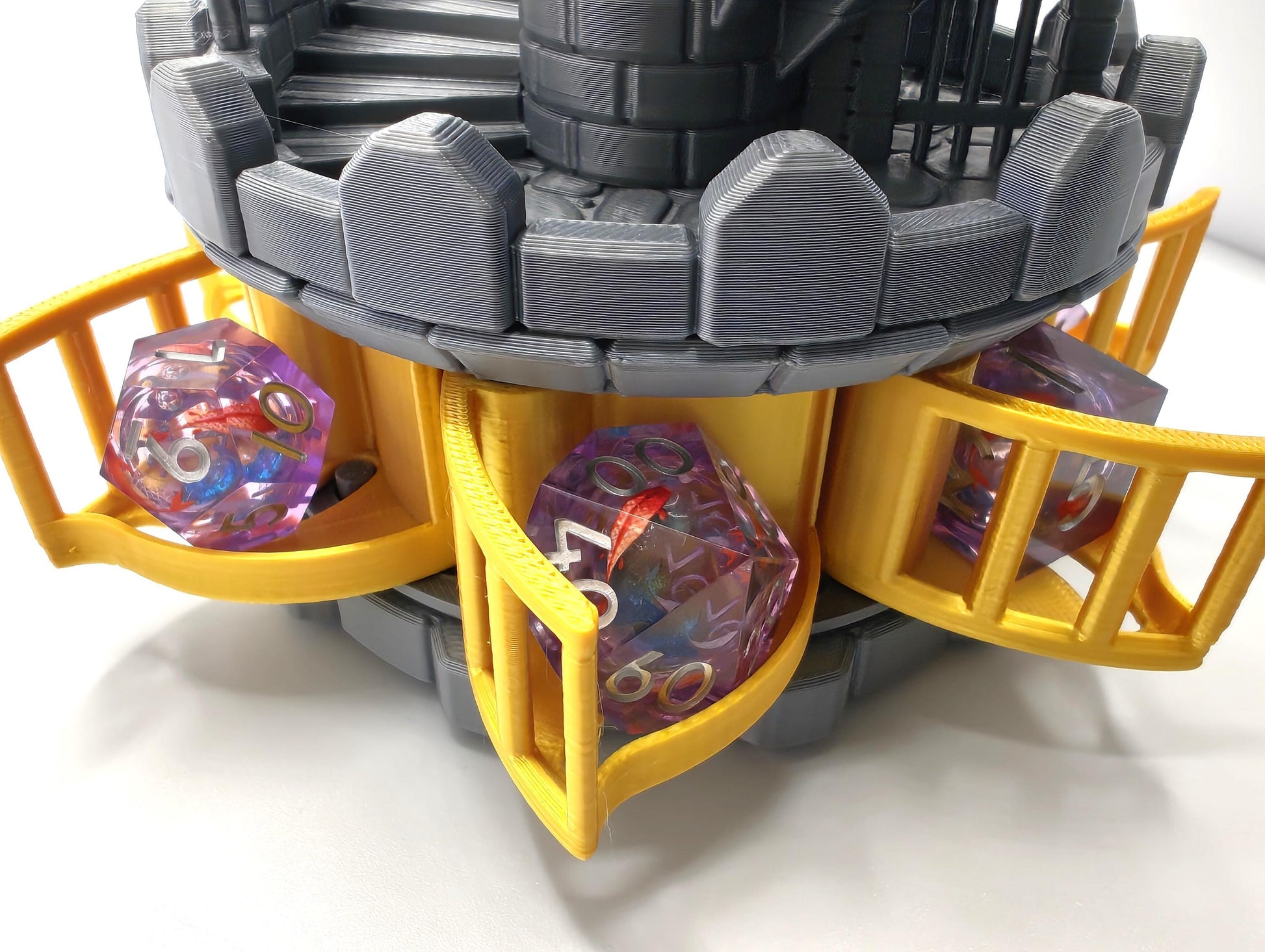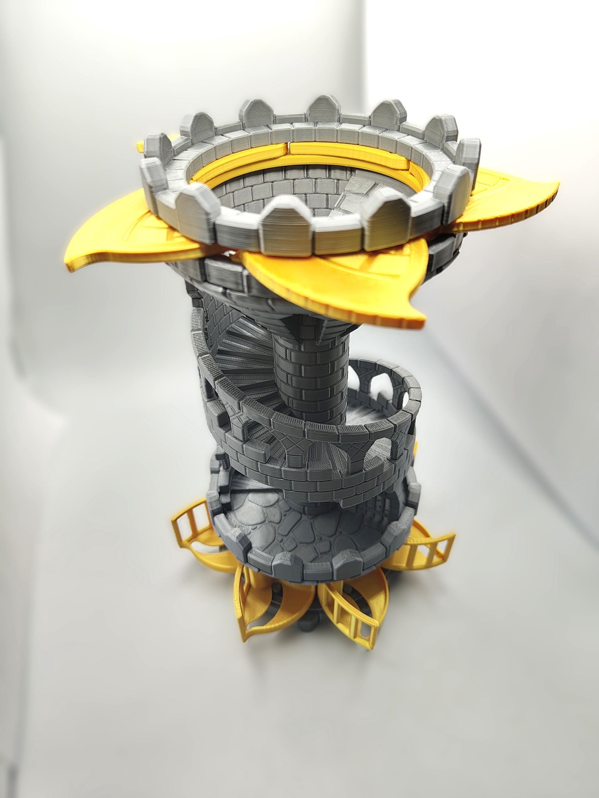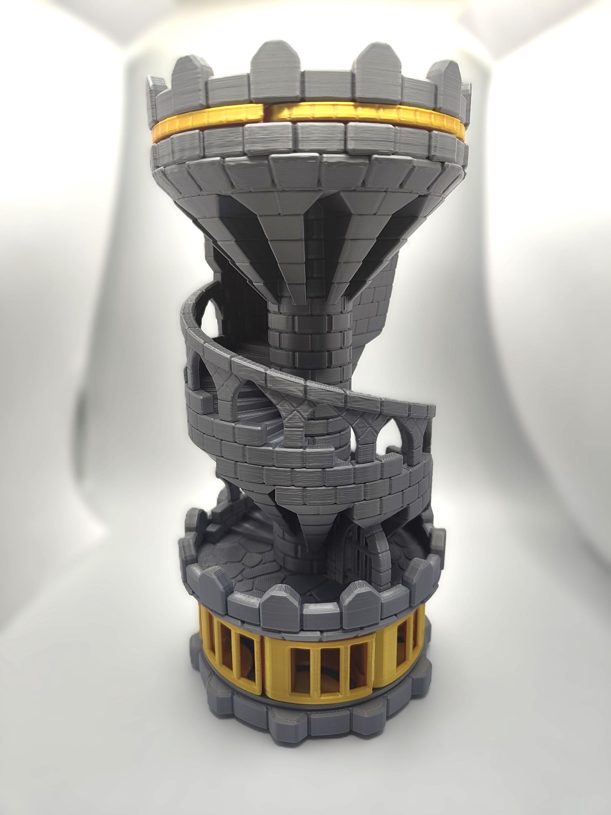 Step into a world of adventure with this intricately designed dice tower, shaped like a grand castle tower with rolling stairs to guide your dice to fate! Crafted with detail and functionality in mind, this 3D-printed tower is the ultimate companion for tabletop RPGs, board games, and dice enthusiasts.